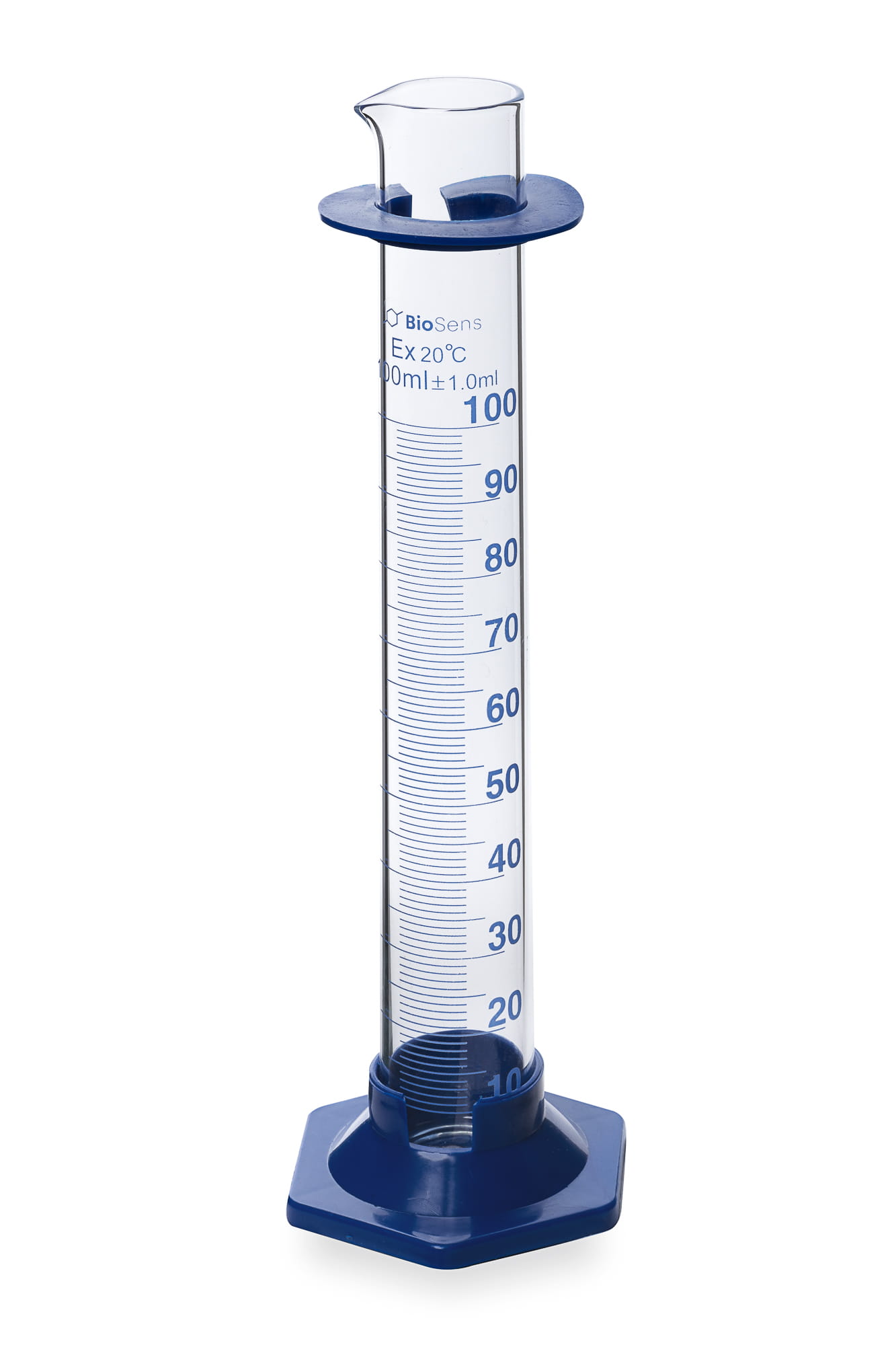 Cylinder miarowy BIOSENS szklany z podziałką 100 ml, stopa PP